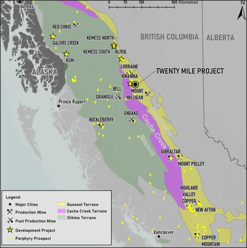 The Twenty Mile (TM) Project is located in BC’s Prolific Quesnel Trough Porphyry Belt, host to world class porphyry deposits such as Highland Valley Copper (Teck), Copper Mountain (Hudbay), Mt Polley (Imperial Metals), New Afton (New Gold), and Mount Milligan (Centerra).